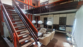 → na prízemí sa nachádza denná časť pozostávajúca z priestrannej obývacej haly s krbom, kuchyne, komory, kúpeľne s WC a vstupom do samostanej bytovej jednotky
