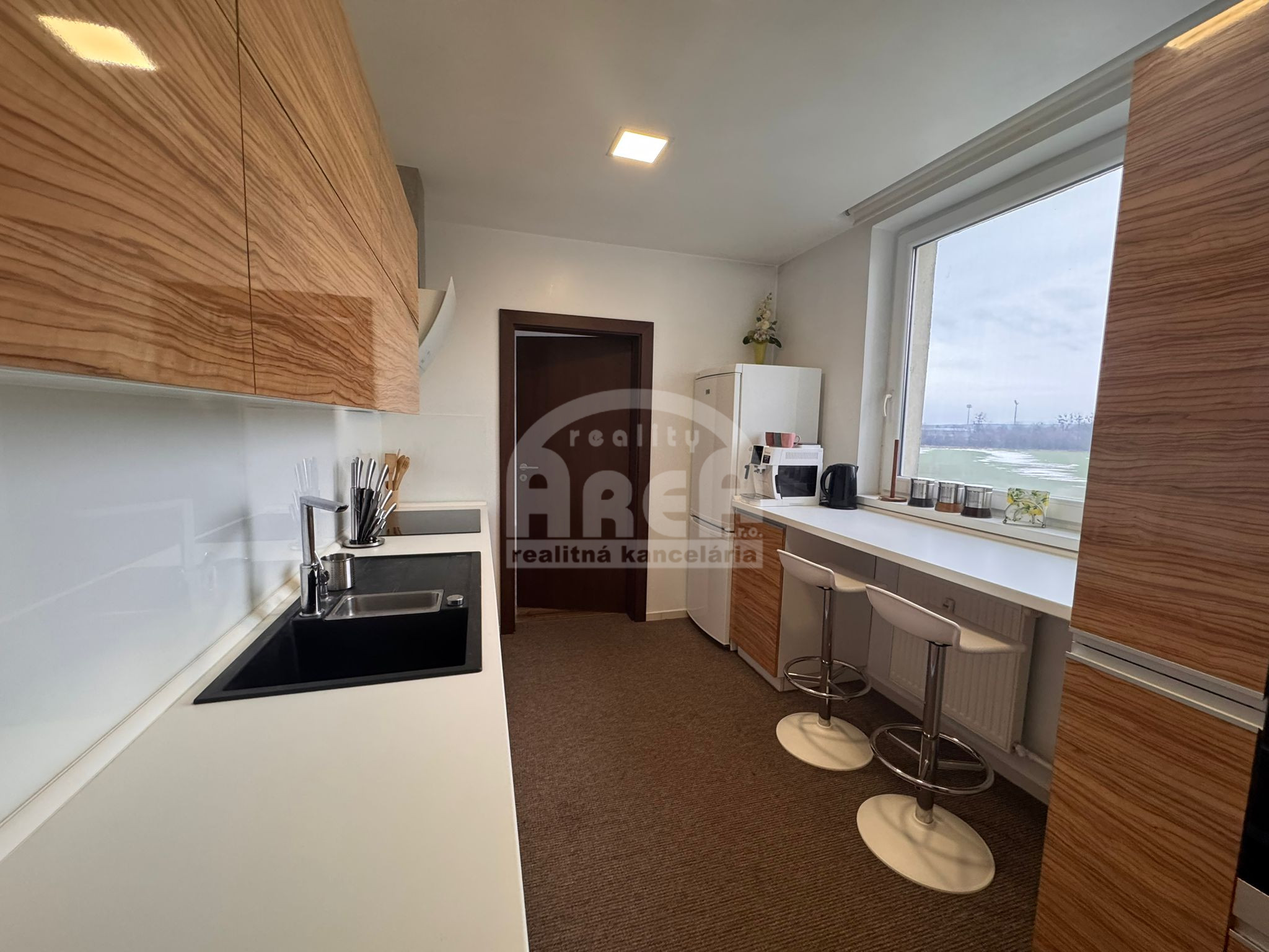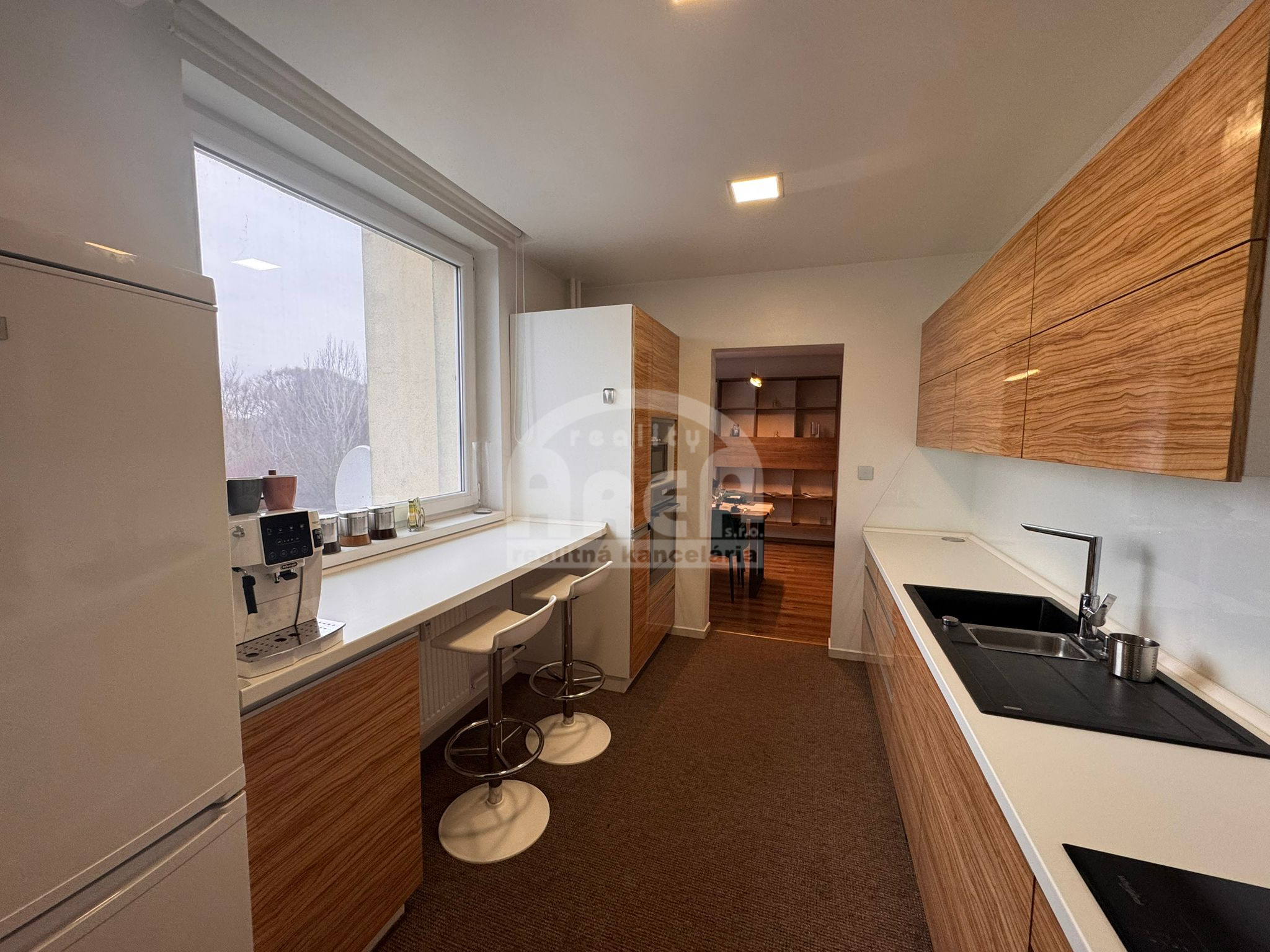 - kuchynská linka so vstavanými spotrebičmi (indukčná varná doska, umývačka riadu, vstavaná rúra a mikrovlnná rúra, digestor, kávovar, chladnička s mrazničkou,..)