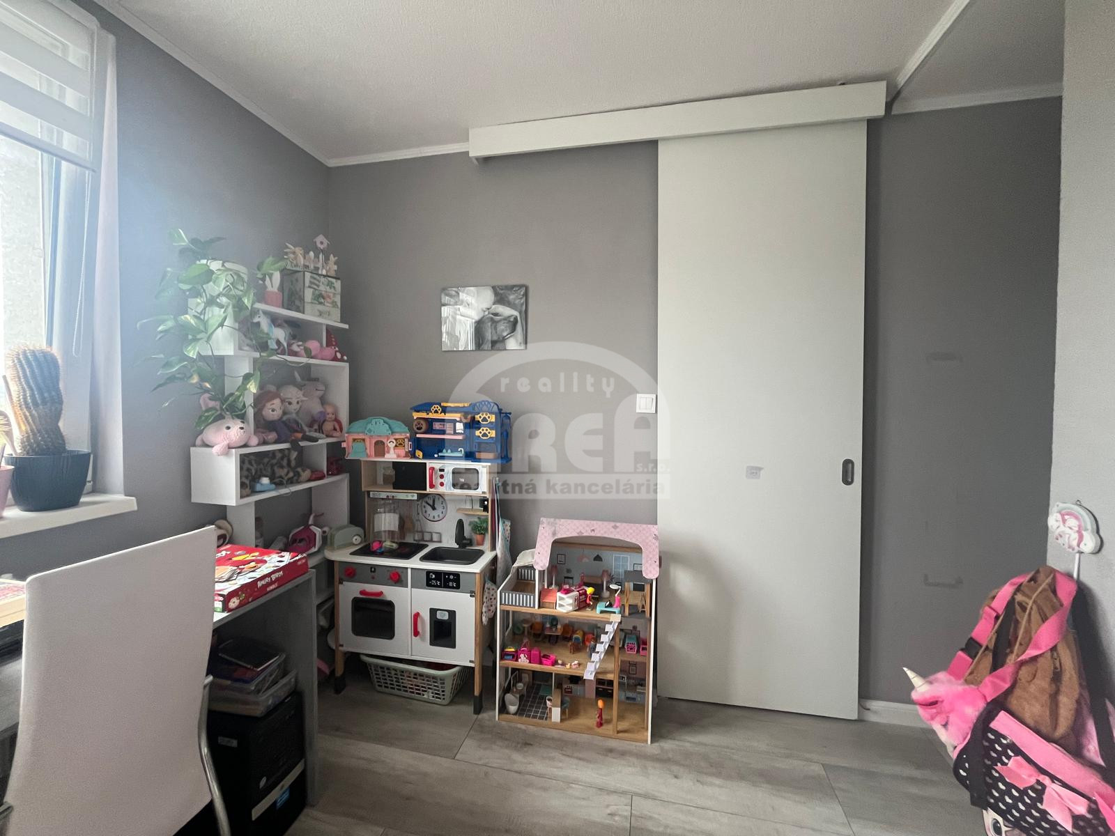 - dispozičné riešenie: vstupná chodba, detská izba so šatníkom, spálňa, detská izba, obývacia izba prepojená s kuchyňou, kúpeľňa s WC